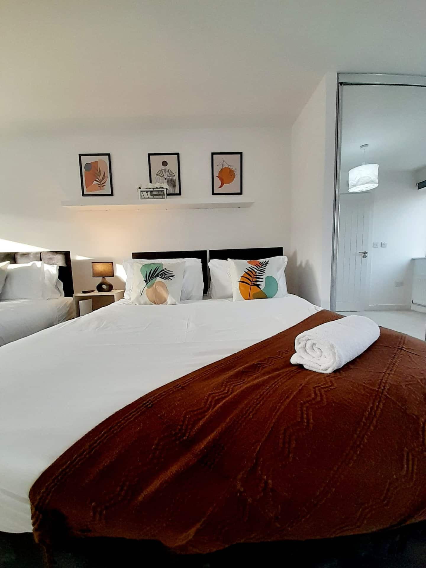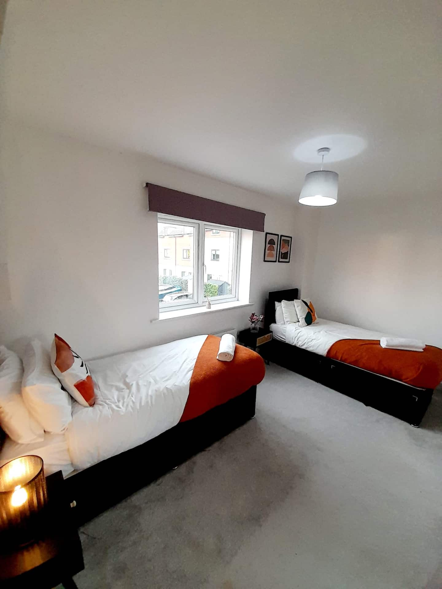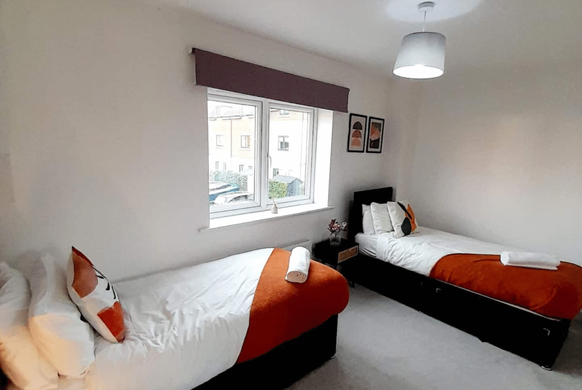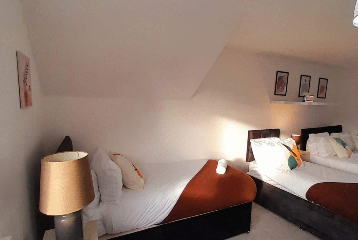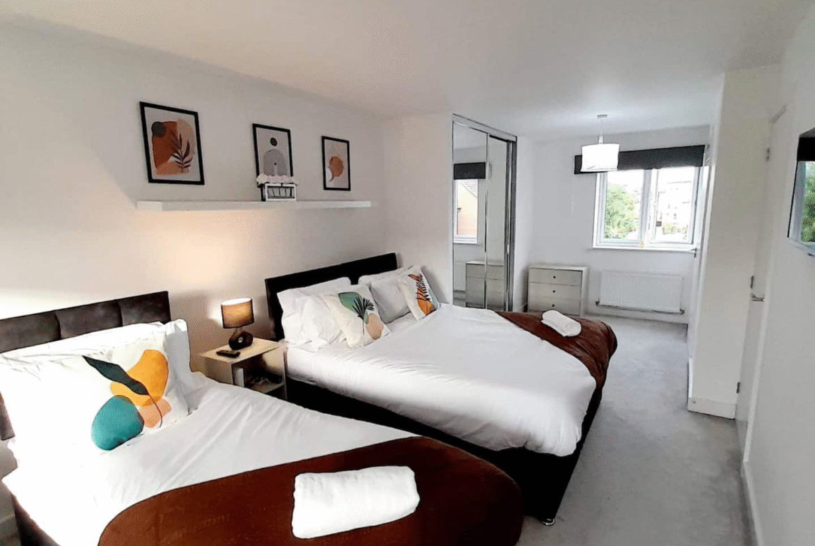Perfectly located between a scenic park and a lively high street, this three-storey townhouse in a quiet, gated community near Shirley Park offers the ideal stay for contractors, families, couples, and business professionals visiting Birmingham or Solihull. The property is within walking distance of supermarkets, cafés, restaurants, bars, and shops, and just a short drive from Solihull Train Station, the NEC, Birmingham Airport, Resorts World, Cadbury World, HS2 sites, the National Motorcycle Museum, and Birmingham City Centre. Guests benefit from generous weekly and monthly discounts of up to 35 percent for long stays, as well as booking perks such as a complimentary gift with 7-night bookings and a free 12pm checkout for weekend stays.