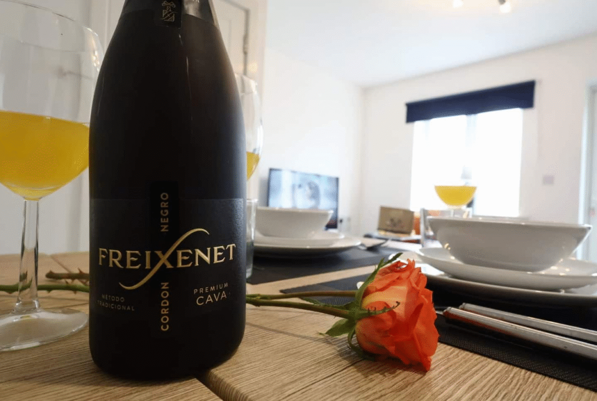 The home features three spacious bedrooms and 2.5 bathrooms, with a travel cot available for a small fee. The fully equipped kitchen includes a coffee machine, washer-dryer, dishwasher, and two fridge freezers. The stylish living and dining area seats four and overlooks a sunny patio, with a 50-inch Smart TV offering complimentary access to Netflix, Disney Plus, and Prime Video, plus HDMI connectivity for gaming or personal devices.